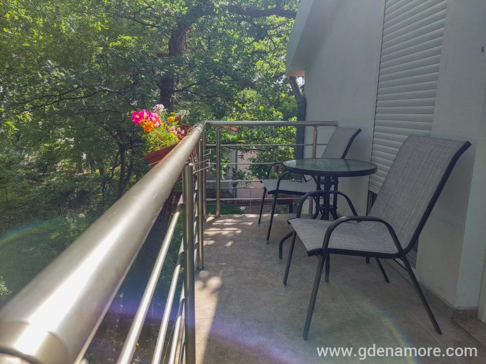 Stanovanje je popolnoma ločena in samostojna etaža hiše. Ima tudi delovno sobo, ki omogoča udobje dela od doma. Gostje se lahko sprostijo zelo blizu centra mesta, a obdani z naravo. Stanovanje je zelo funkcionalno, zvočno izolirano, opremljeno s popolnoma novim pohištvom z dodatki elementov družinskega in starinskega značaja.